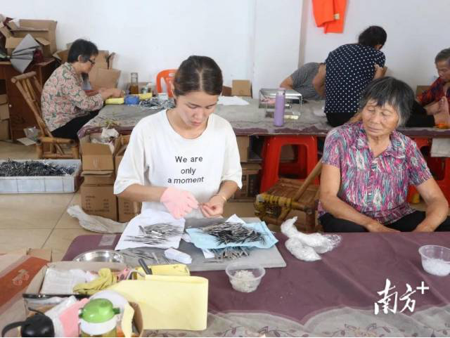 华陈村村民林月仙便是加工点的受益者。对于能在家门口工作,她笑得合不拢嘴:“现在年纪大了,平时要照顾孙子,中午晚上还要给老伴煮饭。平时外出一趟也没空,现在好了不用去外面打工,可以在家门口上班赚钱了,真是帮了大忙。”