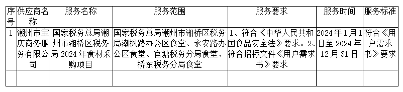 二、项目名称:国家税务总局潮州市湘桥区税务局2024年食材采购项目
