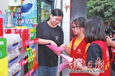 枫溪区志愿者向市民派发《文明交通安全出行倡议书》。受访者供图