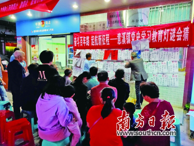 潮州市意溪镇党史学习教育灯谜会猜活动吸引群众围观参与。受访者供图