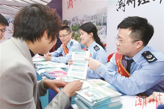 市税务局工作人员向群众宣传有关税收政策。潮税 供