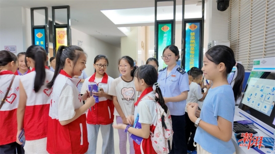 湘桥区税务局联合潮州市青少年宫开展“小小税官探秘办税大厅”活动。