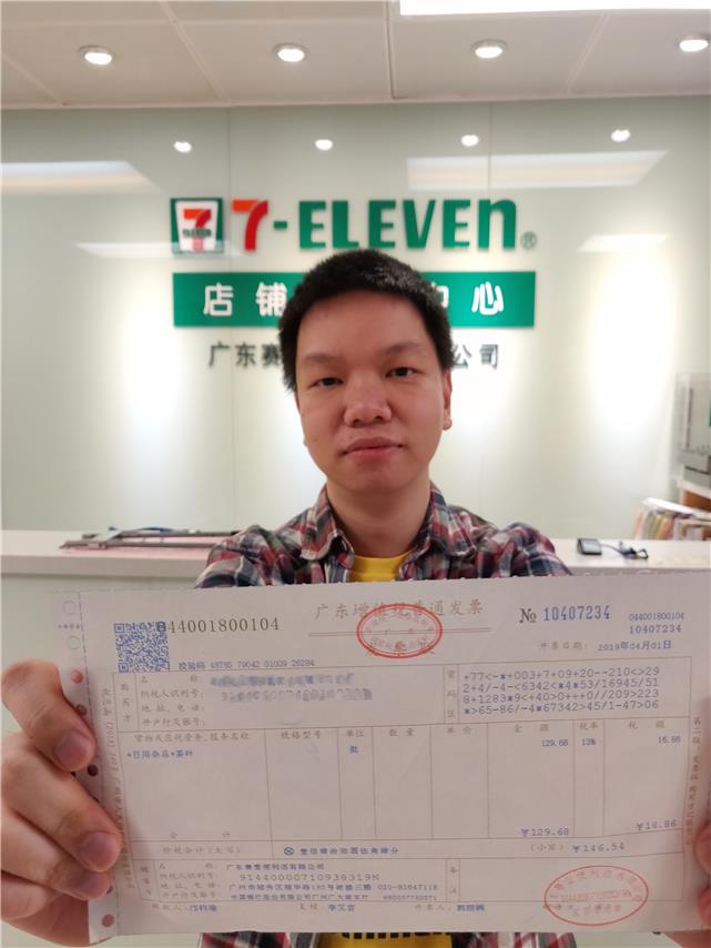 增值税税率下调政策实施首日,企业顺利开出新税率增值税发票。图为广东赛壹便利店有限公司向记者展示刚刚开出的发票。摄影 岳瑞轩