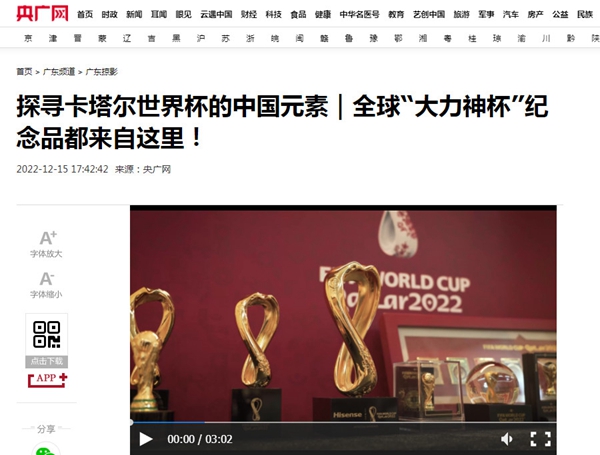 东莞玮光礼品有限公司外贸部总监许志强:今年的世界杯,我们玮光拿到的是包含主办国在内的全球销售权,成为“大力神杯”纪念品的唯一授权生产商。今年生产的“大力神杯”纪念品有将近两百多款商品。