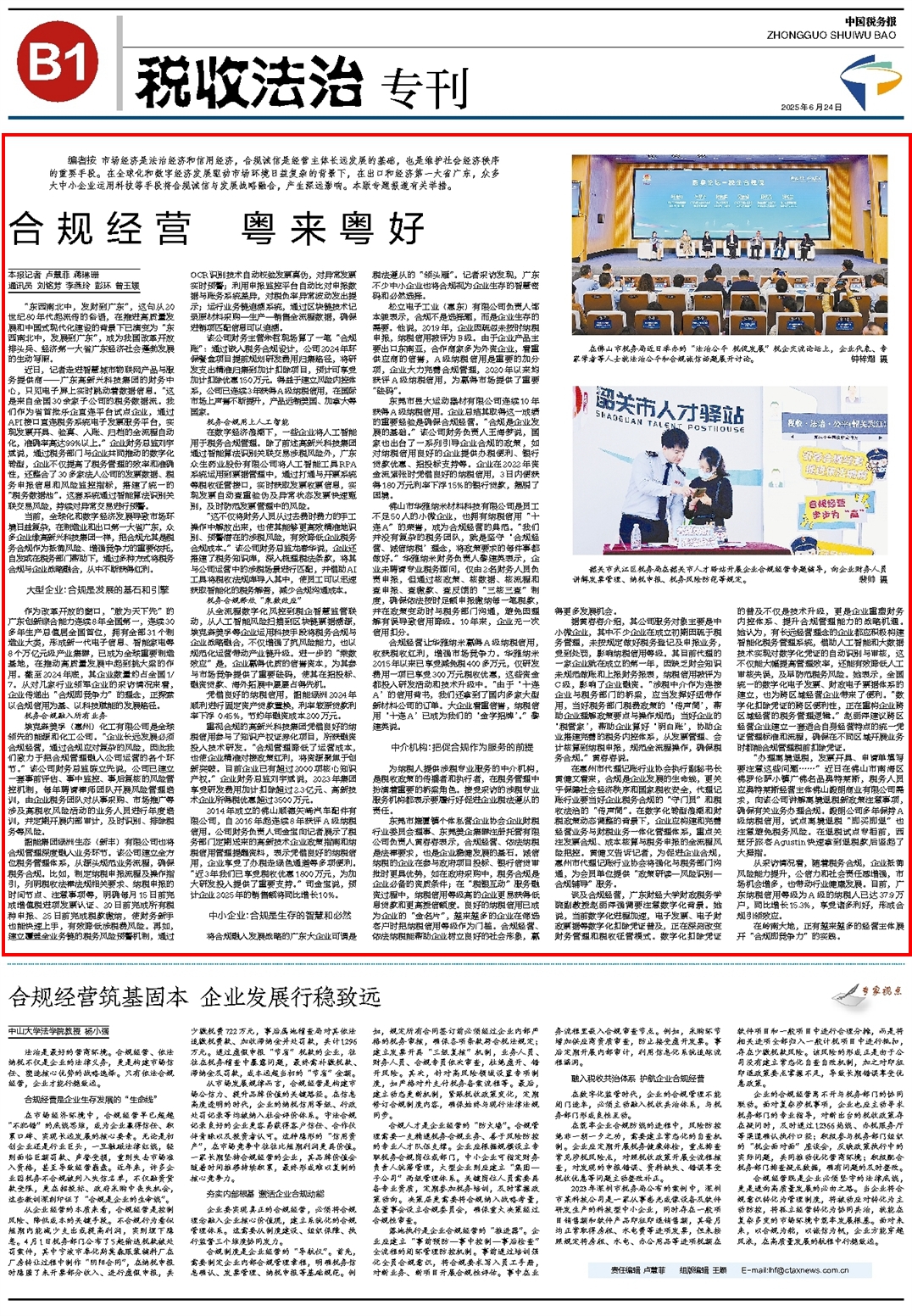 从采访情况看,随着税务合规,企业抵御风险能力提升,公信力和社会责任感增强,市场机会增多,也带动行业健康发展。目前,广东纳税信用等级为A级的纳税人已达37.9万户,同比增长15.3%,享受诸多利好,形成合规引领效应。