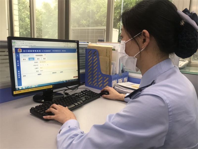 图为国家税务总局佛山市三水区税务局乐平税务分局出口退税审核岗工作人员在审核辖区内生产企业的退税申报。