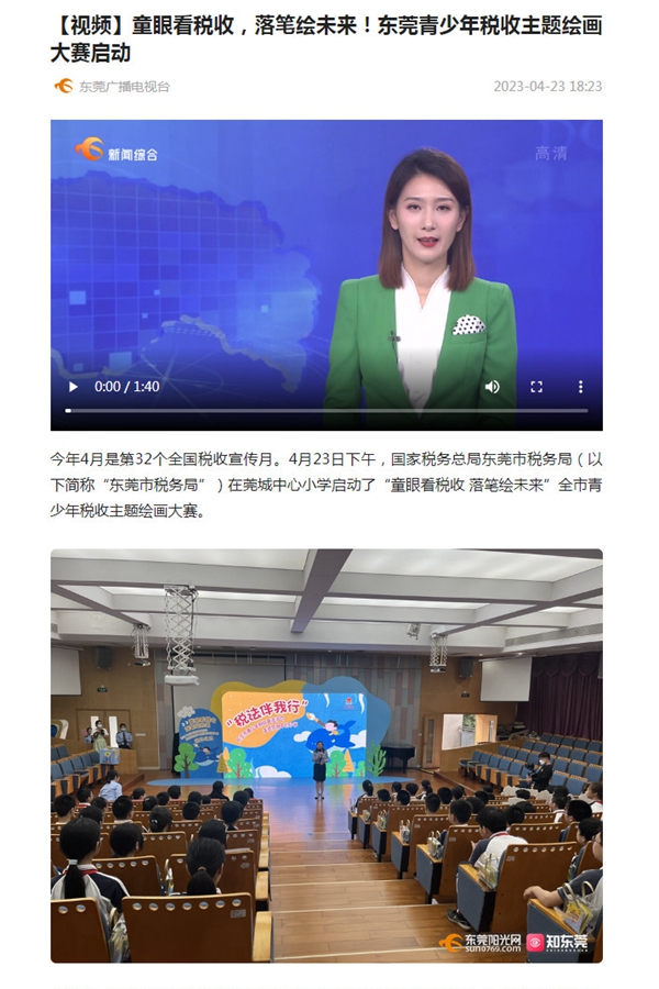 今年4月是第32个全国税收宣传月。4月23日下午,国家税务总局东莞市税务局(以下简称“东莞市税务局”)在莞城中心小学启动了“童眼看税收落笔绘未来”全市青少年税收主题绘画大赛。