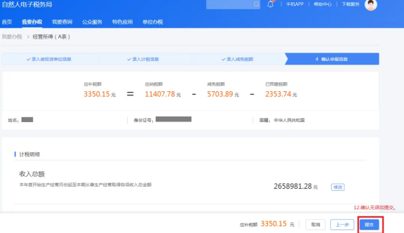 选择具体减免项目,确认减免税额无误后点击“下一步”。