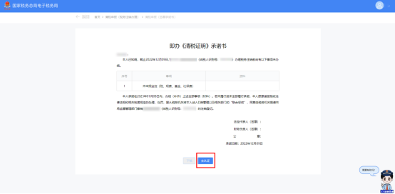 b.系统跳转即办《清税证明》承诺书界面,点击【去认证】。
