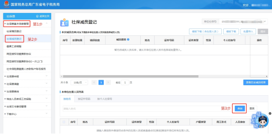 微信内搜索“粤税通”小程序,注册并完成实名认证后登录办理:【社保业务】→【更多】→【减员】,按照相关步骤操作即可;【全部功能】→【社保业务】→【减员】,按照相关步骤操作即可。 |