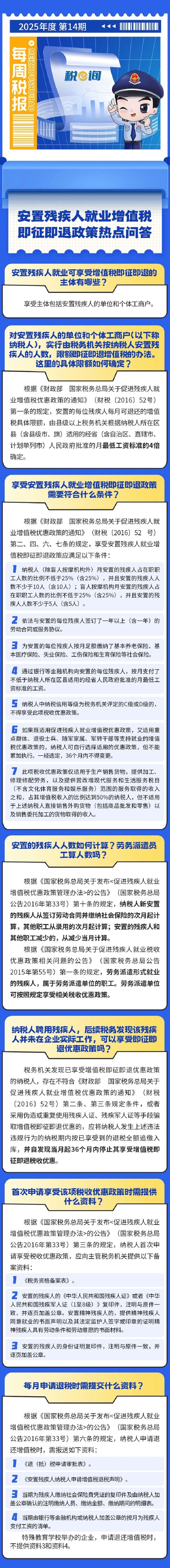 每周税报|安置残疾人就业增值税即征即退政策热点问答