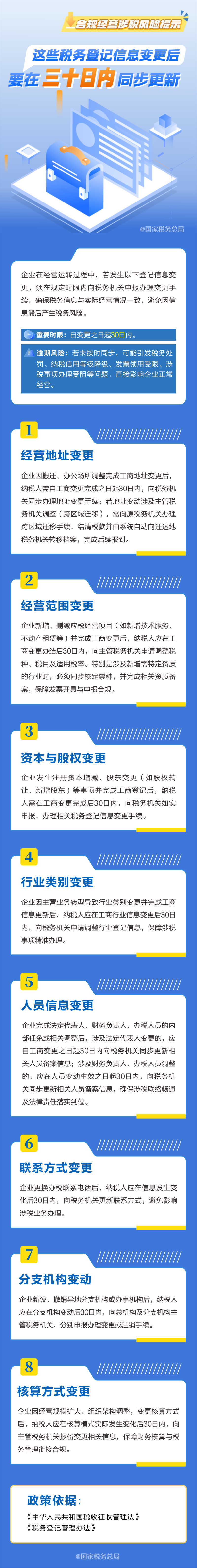 图解|提醒!这些税务登记信息变更后,要在三十日内同步更新