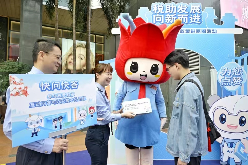 (图为广州税务部门卡通形象代言人“穗悦棉畅宝”向市民普及税收知识。陈茁舟摄)