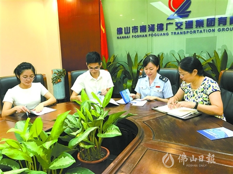 26日,佛山税务工作人员走进佛广交通讲解减税降费政策。