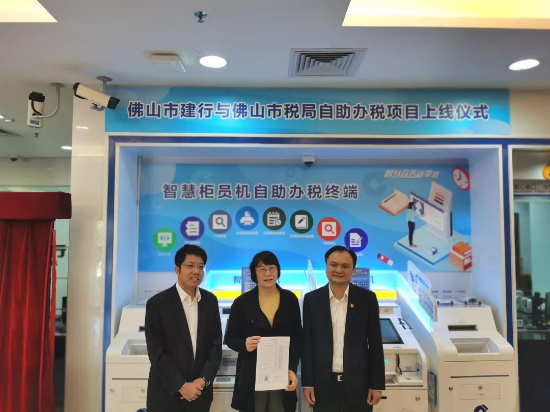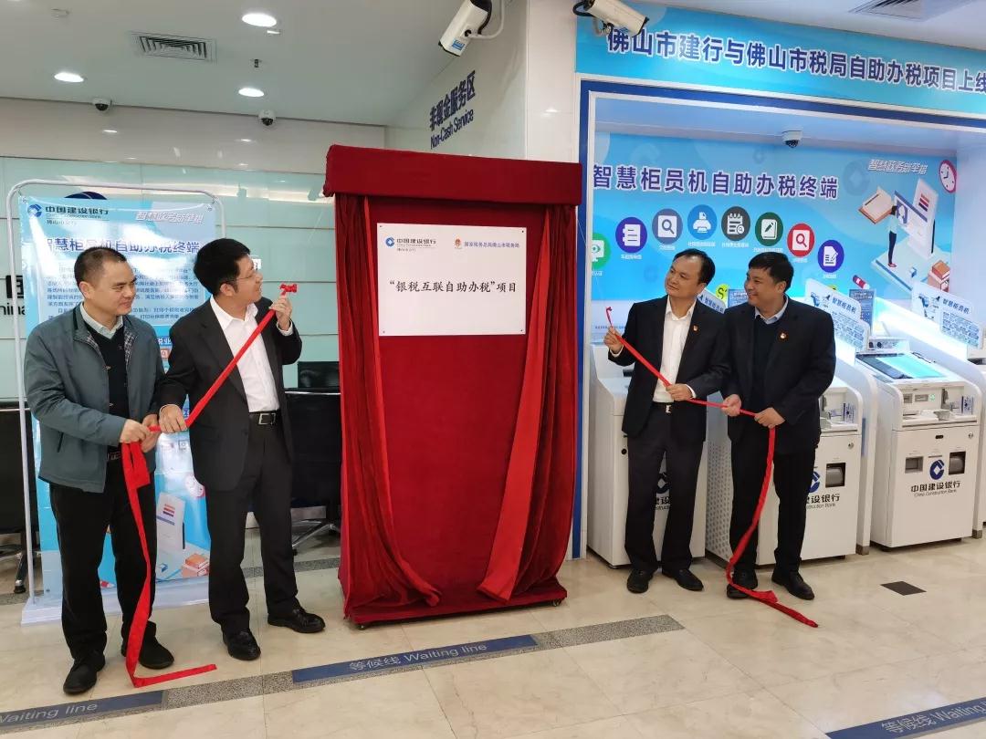 12月10日,国家税务总局佛山市税务局与中国建设银行佛山市分行联合举办“银税互联自助办税”项目上线仪式,建设银行佛山禅城中心支行等第一批上线网点的智慧柜员机正式开通自助办税服务功能。佛山建行成为全市首家将自助办税功能延伸至银行物理网点的商业银行。