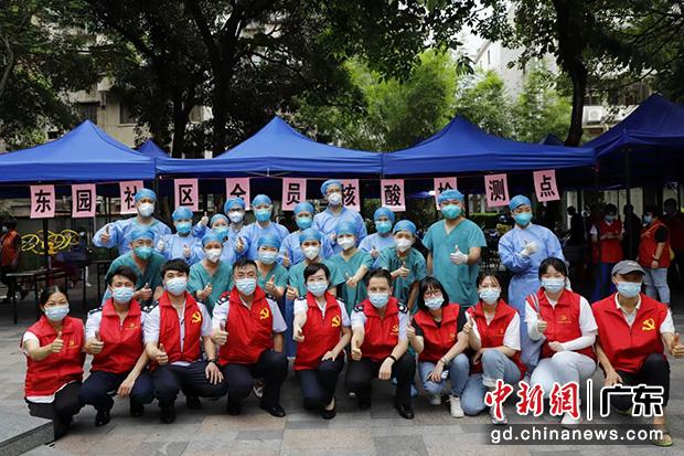 图为广州市番禺区税务局志愿者现场支援石壁街核酸检测工作。
