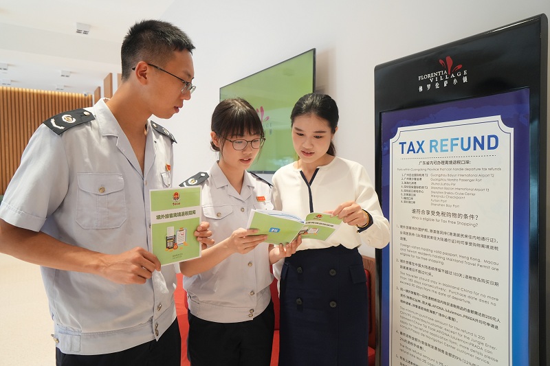 佛罗伦萨小镇广佛名品奥特莱斯商店是广东佛山市内首个离境退税“即买即退”试点。近日,国家税务总局佛山市南海区税务局组织青年税宣团走进佛罗伦萨小镇,积极开展离境退税相关新政信息宣传辅导,并为退税柜台工作人员现场讲解退税要点、系统操作等事项,助力提升境外游客在佛山办理离境退税“即买即退”的服务体验更加便捷高效。