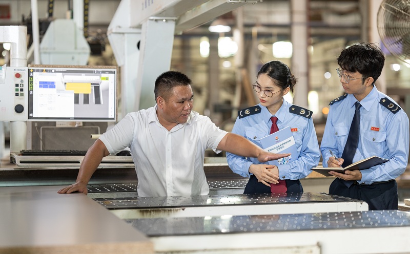 近期,国家税务总局佛山市三水区税务局开展企业走访,加强税收政策宣传,提供个性化辅导服务,积极支持企业合规发展。图为税务人员走进家居行业企业车间,关心和了解生产经营情况,并讲解相关行业税收政策,听取意见建议。