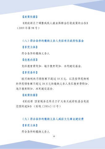 (八)符合条件的缴纳义务人免征有关政府性基金