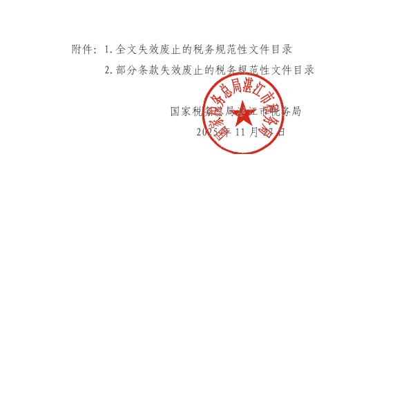 国家税务总局湛江市税务局关于公布全文和部分条款失效废止的税务规范性文件目录的公告