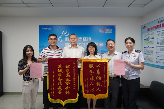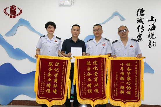 8月,太平洋证券公司一行上门向分局赠送“优质高效解企忧 真诚服务传美名”和“心系纳税人 服务暖人心”两面锦旗和感谢信。企业表示,三分局用实际行动践行了党“全心全意为人民服务”的宗旨,让企业和个人不仅收获到“真金白银”的税惠红利,还切身体会到税务机关服务的速度和温暖。
