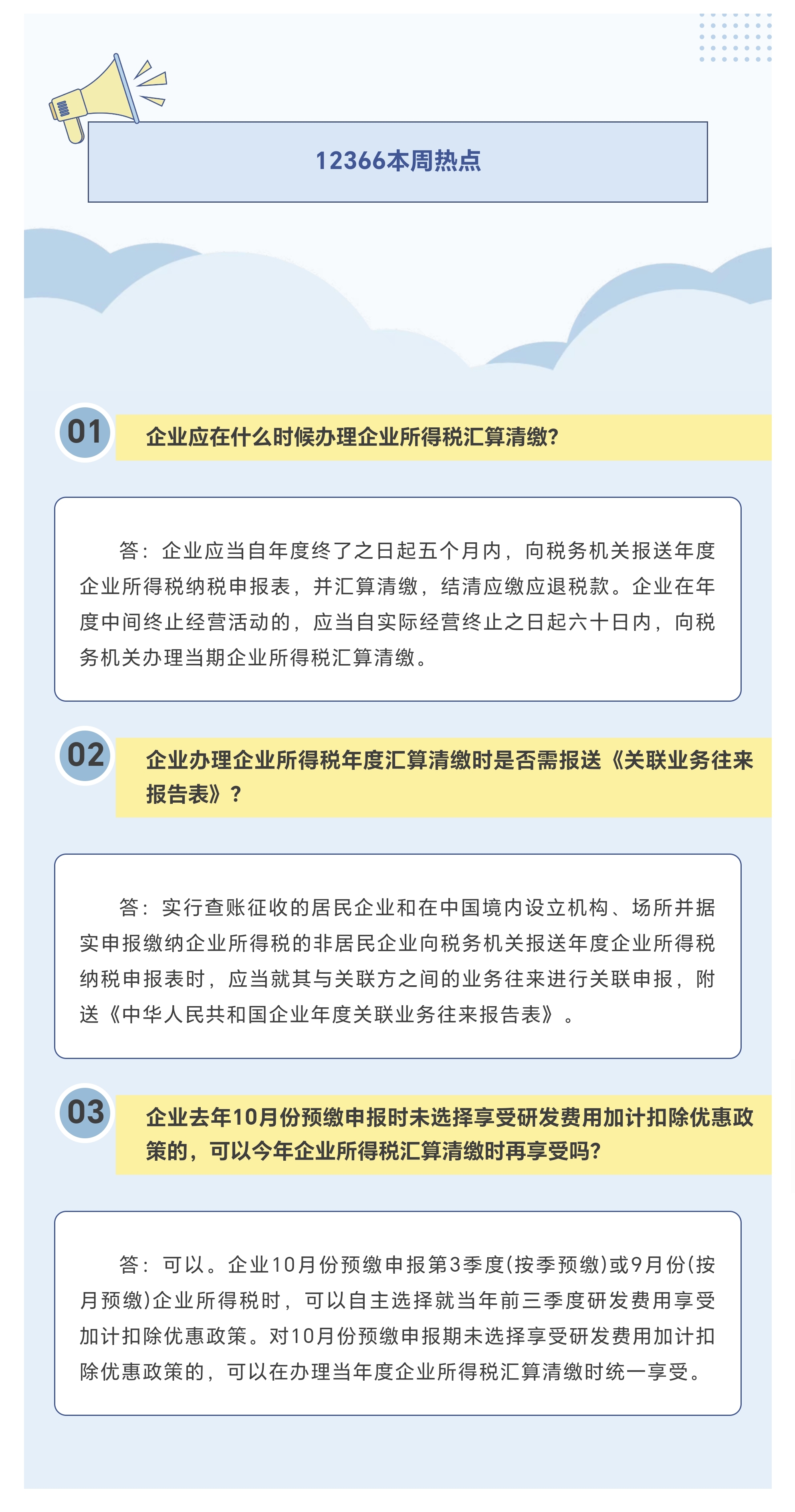 12366本周热点 | 企业应在什么时候办理企业所得税汇算清缴(91期)