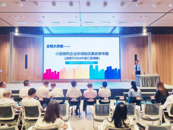 荔湾区税务局红荔益企税务服务队参加荔湾区工商联举办的第三季度惠企日政策宣讲活动。会上,荔湾区税务局企业所得税科、第一税务所党员骨干为约130位企业家及商会负责人精准解读小型微利企业所得税优惠政策,深入推介“荔税易2025惠民利企10条”举措,有效帮助企业明晰税费政策。