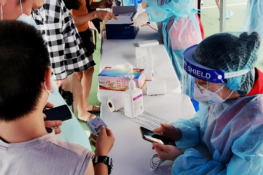 5月30日,海珠区开始第一轮全员核酸检测。“志愿者招募信息发到工作群上不到10分钟,就有45名干部接龙报名。”税务志愿者王秀付说,“经过简单培训后,我们第一批志愿者就分赴官洲街道、江海街道、海珠体育馆等核酸检测点,希望可以用最快的速度阻断疫情的传播。”珠体育馆等核酸检测点,希望可以用最快的速度阻断疫情的传播。”