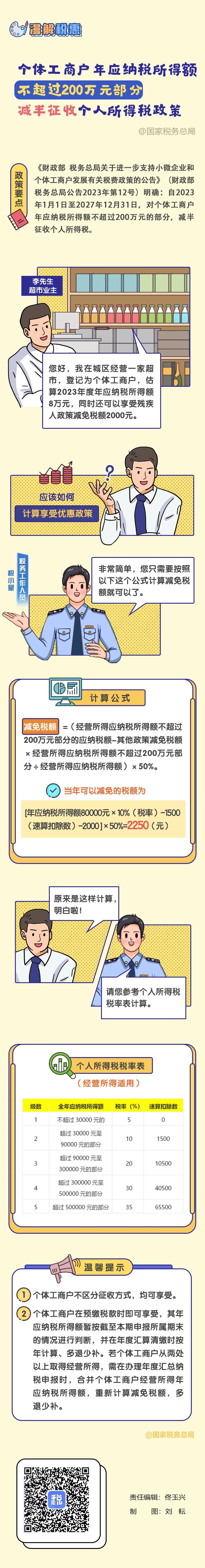 漫解税惠|个体工商户年应纳税所得额不超过200万元部分减半征收个人所得税政策