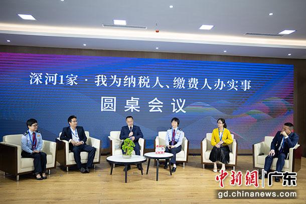 图为税企双方在“深河1家·我为纳税人、缴费人办实事圆桌会议”现场为河源企业“融入大湾区”出谋划策