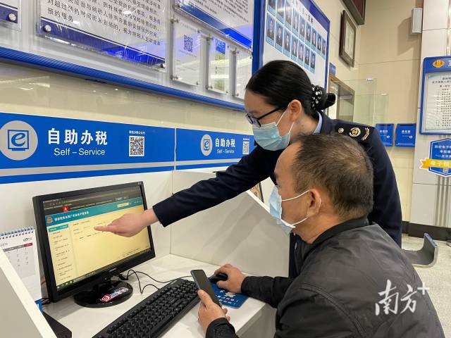 税务人员正在辅导纳税人进行自助办税。 南方拍客 叶劲 供图