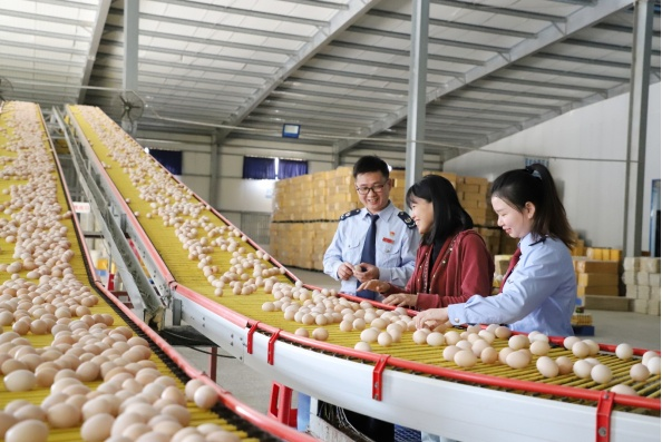 将视角从茶田转到农场,数字赋农的现代农业蓝图也清晰可见。在广东绿杨农业股份有限公司(以下简称绿杨农业)的鸡舍内,1名管理人员就管理着鸡舍内的10万羽蛋鸡。据介绍,这是绿杨农业的全程自动化养殖模式,农场内的200万羽蛋鸡采用绿色无公害养殖模式,从喂养、饮水、调温,到集蛋、检测、清粪,实现了全程规模化、自动化、规范化养殖。