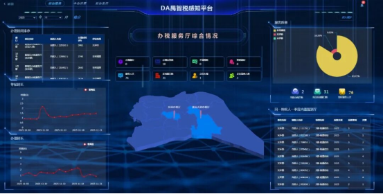 王先生的感受源于番禺区税务局落实办税服务厅“优前台、强中台、精后台”转型理念,依托税务大数据平台“底座”,创新打造“DA禺智税感知平台”。这个平台如同一个“智慧大脑”,将过去分散在各个系统中的数据进行汇聚分析,实现了对税费服务全过程的动态监测和智能研判,让“人找服务”转变为“服务找人”。