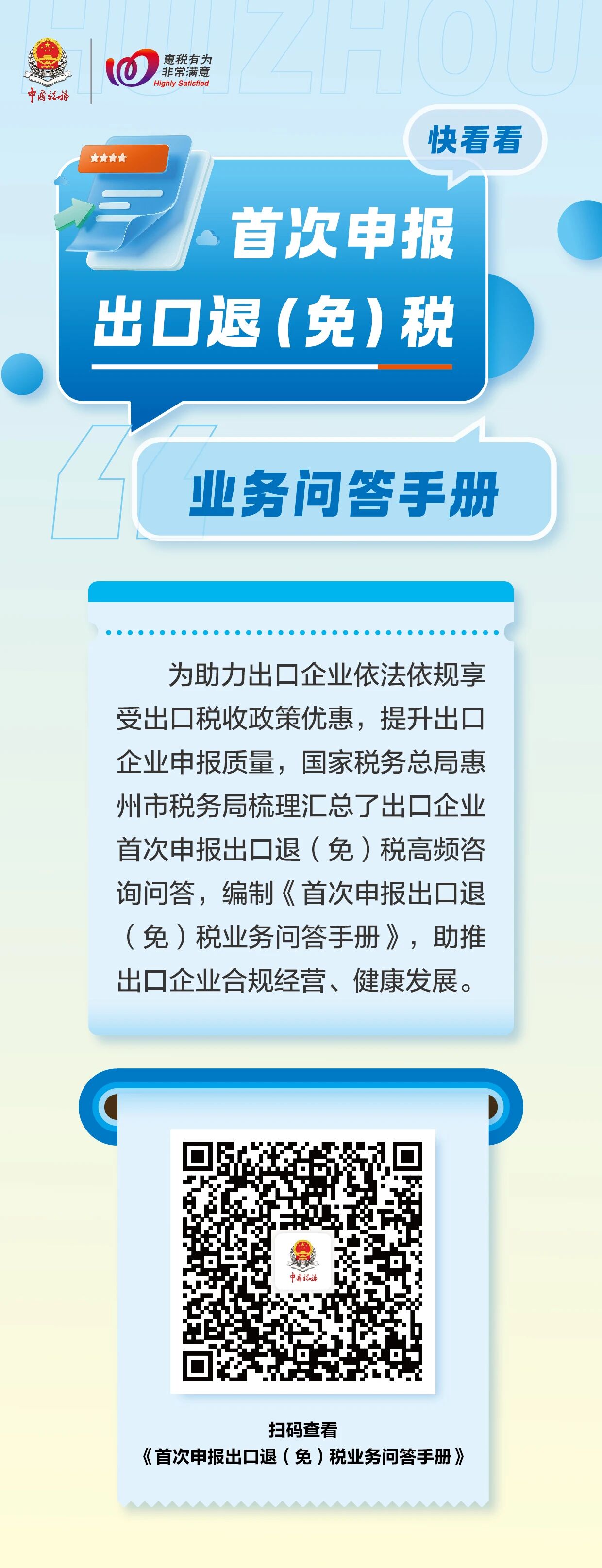 惠州市税务局发布《首次申报出口退(免)税业务问答手册》,快来看看吧~
