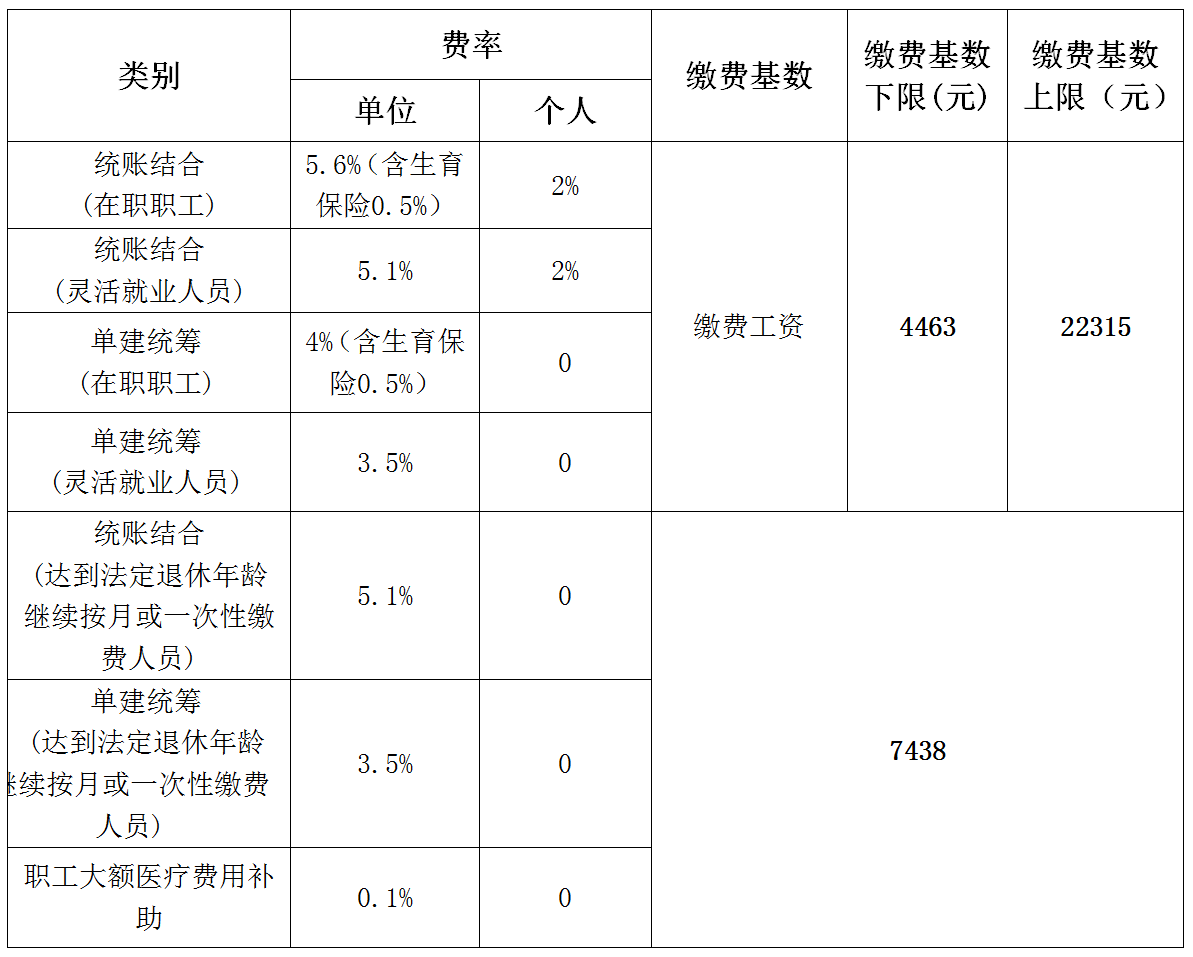 根据《惠州市社会基本医疗保险办法》(惠府〔2023〕42号)、《惠州市社会基本医疗保险实施细则》(惠医保规〔2024〕1号)等相关规定,2026年1月起,我市职工基本医疗保险、职工大额医疗费用补助、生育保险费率费基按下表执行: