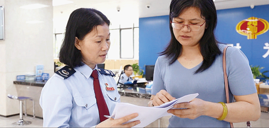 仲恺区税务局办税大厅负责人张凤英(左)。
