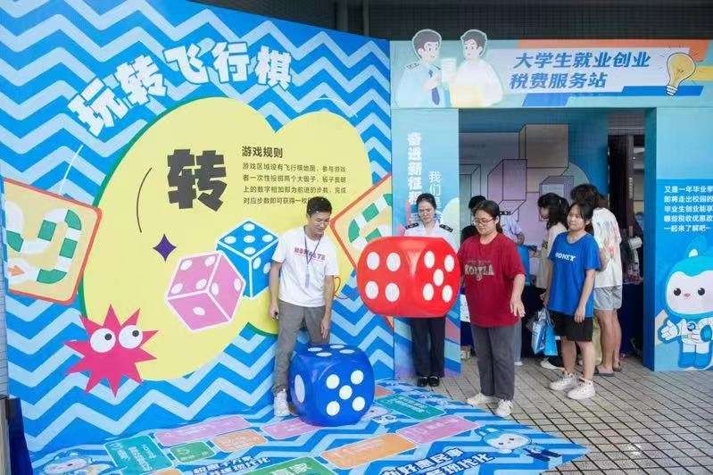 惠州学院里的“助力大学生就业创业税费服务站”人头攒动,丰富有趣的“税收嘉年华”游戏、“税月印记”打卡互动区、“点单式”税费服务,吸引了大批学生前来参与,以年轻人喜闻乐见的方式,为高校学生咨询税费政策提供便利,为就业创业注入“税动力”。