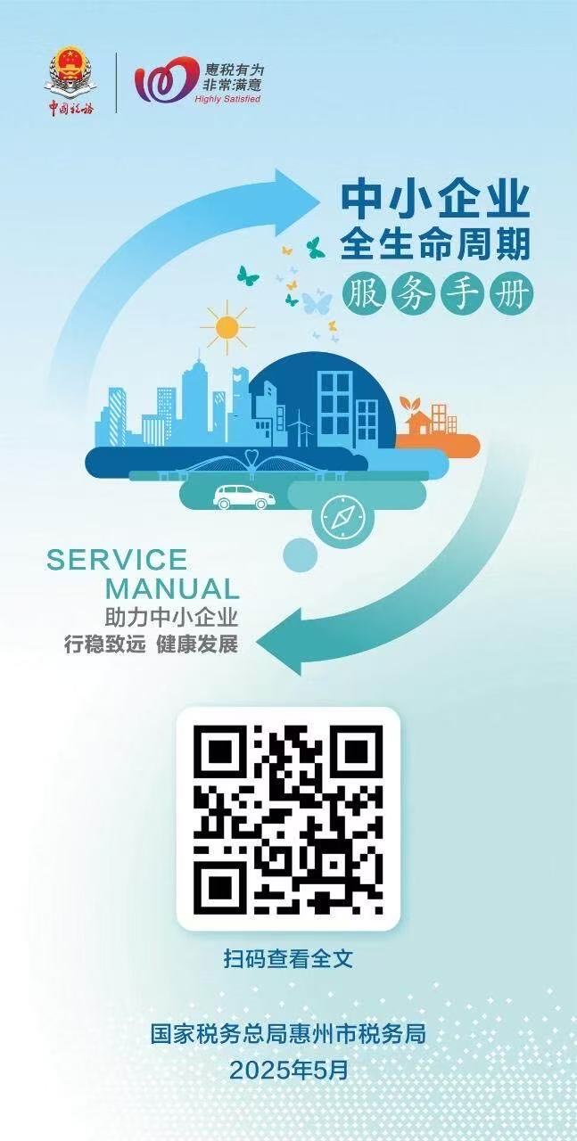 此外,针对企业全生命周期涉税需求,惠州税务部门还编制了《中小企业全生命周期税费服务手册》,覆盖开办、经营至退出全环节,帮助企业合规办税、安心经营。