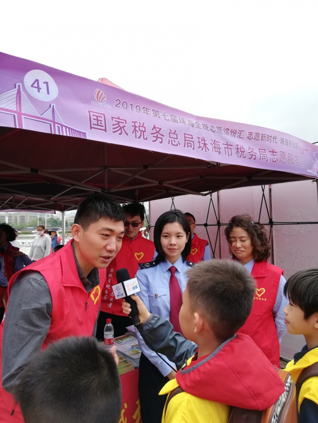 珠海税务部门“税收政策缤纷汇”宣讲在现场闪亮登场,来自珠海市税务局和保税区税务局的17名党团员志愿者组成的减税降费“先锋税务”志愿团,带着减税降费惠民“大礼包”走进第七届珠海市全城志愿缤纷汇活动现场。为广大市民提供减税降费、个税改革等政策的纳税咨询辅导服务。