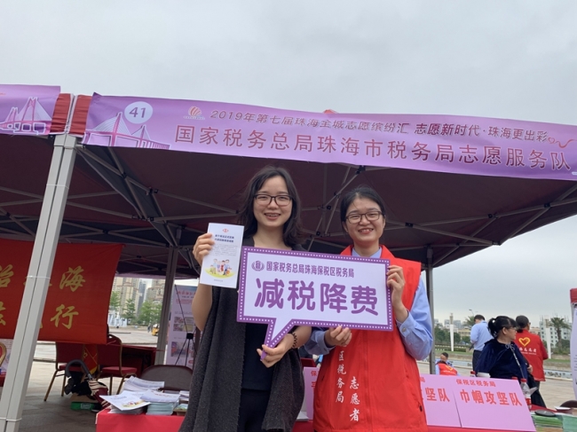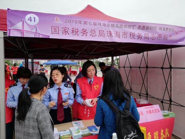 “乘着这次全城志愿缤纷汇的东风,我们党团志愿者为市民讲解了个税改革、增值税税率下调等税收知识,让市民在轻松、愉悦的环境中获得了减税降费‘大礼包’。”珠海税务党团志愿服务队组织人员表示。
