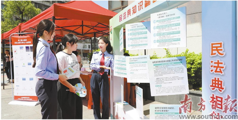在潮南区,税务部门将“民法”与“税法”紧密结合,与区司法局、区法院等20多个单位联合开展“民法典暨优化法治营商环境”主题普法宣传活动,围绕群众关心的不动产租赁、房产继承和社保医保等涉税费问题进行政策宣讲,并结合具体案例对群众关注的婚姻、家庭、继承等法律知识进行讲解。
