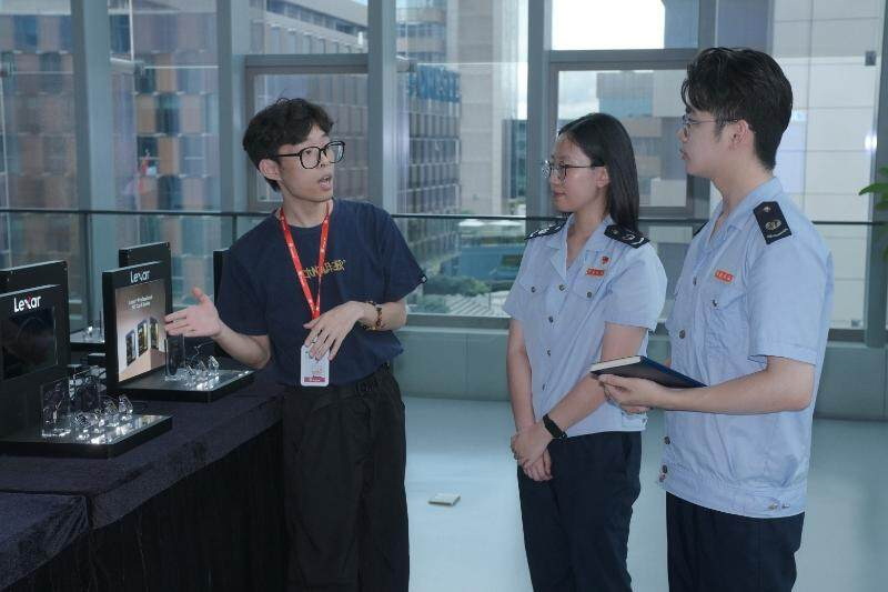 中山市江波龙电子有限公司工作人员向税务人员展示企业相机内存卡产品 梁钰辉 摄
