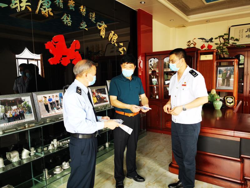 △税务干部在永联康精密铸造锆业公司宣传辅导税费优惠政策。
