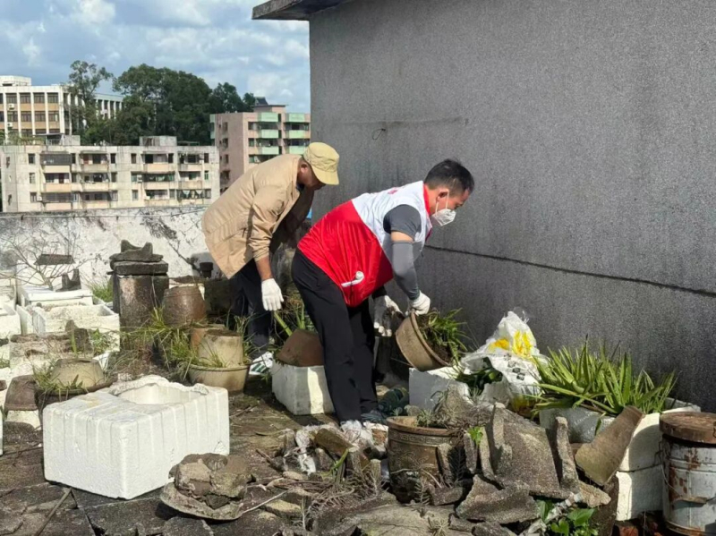 台山市税务局党员干部按要求下沉结对社区上朗社区筑牢防控基础,并积极支援东云社区,集中开展环境整治、防疫宣传工作。税务干部与社区、妇联等工作人员并肩作战,采取分组包干制,手持铁锹、锄头、镰刀、铲子、麻袋等工具,带头逐一清理高楼天台杂物,长期闲置、杂草丛生的地块;全面清理轮胎、篷布、废弃瓶罐等各类积水容器;大力整治背街小巷、沟渠洼地等卫生死角。一旦发现积水隐患,当即现场处置,彻底清除,从源头上切断蚊虫繁殖链。对难以彻底清排的卫生黑点,及时记录上报,持续跟踪,确保彻底清理到位。“这些‘老大难’问题终于解决了,以后再也不怕蚊子扎堆了。”附近居民李阿姨说道。