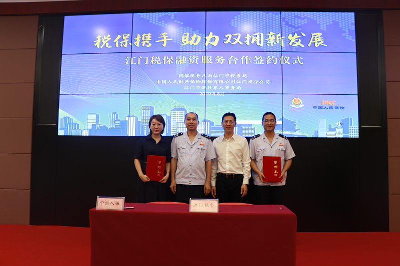 6月4日,江门市税务局与中国人民财产保险股份有限公司江门市分公司共同举办江门税保融资服务合作签约仪式,进一步发挥纳税信用正向激励作用,为纳税人提供更加多元的金融贷款服务。