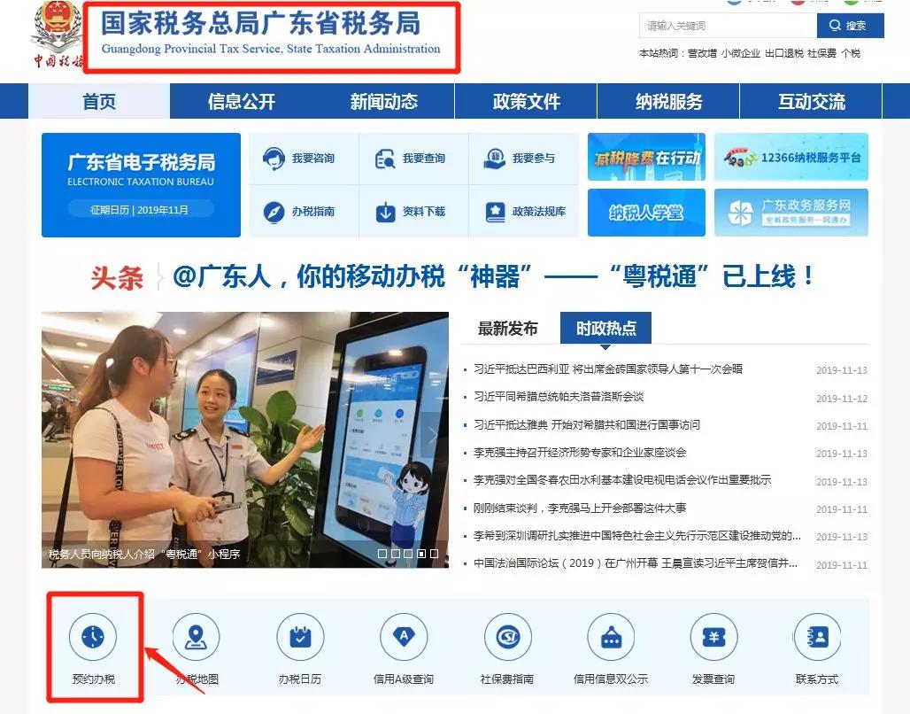 登录广东省税务局或江门市税务局门户网站首页选择“预约办税”;登录广东省电子税务局网站选择“我要预约”—填写经办人相关信息—选择办税主体—选择所要预约的办税服务厅和业务类别、时间段进行预约。