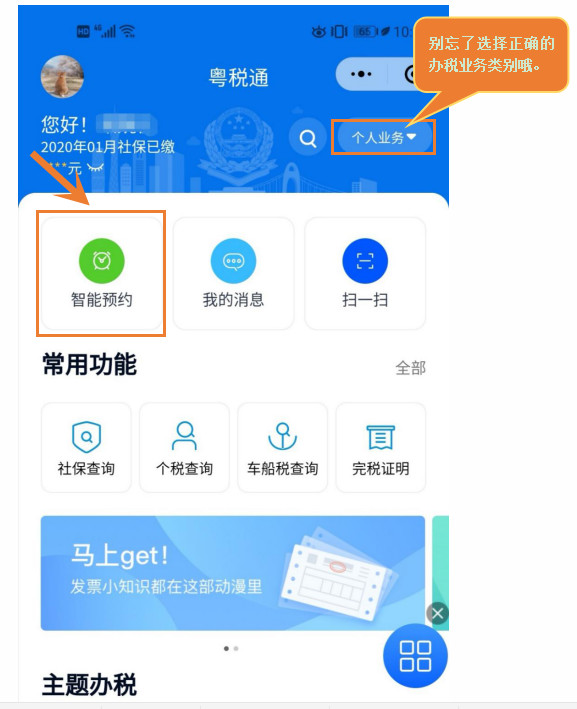 请纳税人(缴费人)严格按照预约办税的时段,持本人身份证或其他有效的预约证件,前往办税服务厅领取相应的预约业务票号并办理业务。