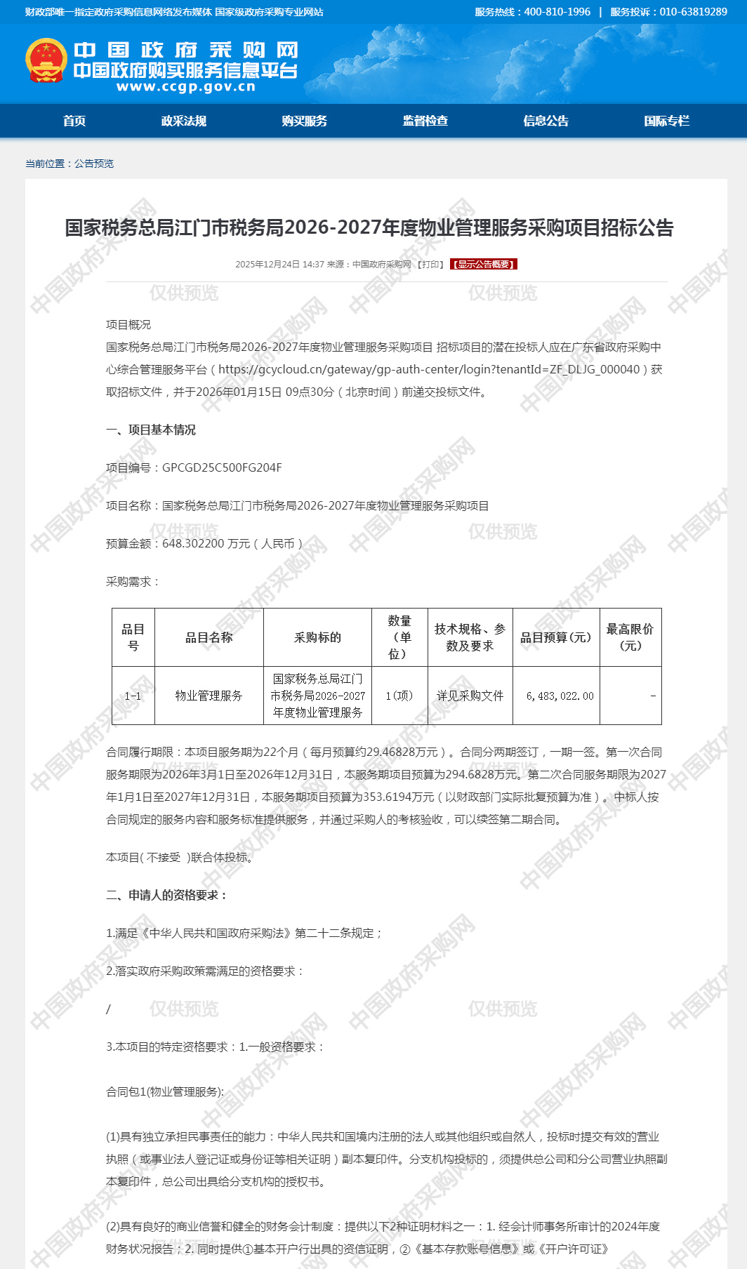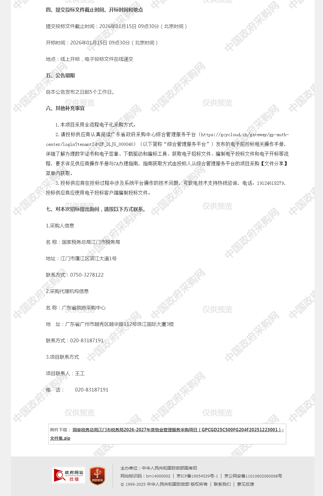 国家税务总局江门市税务局2026-2027年度物业管理服务采购项目招标公告
