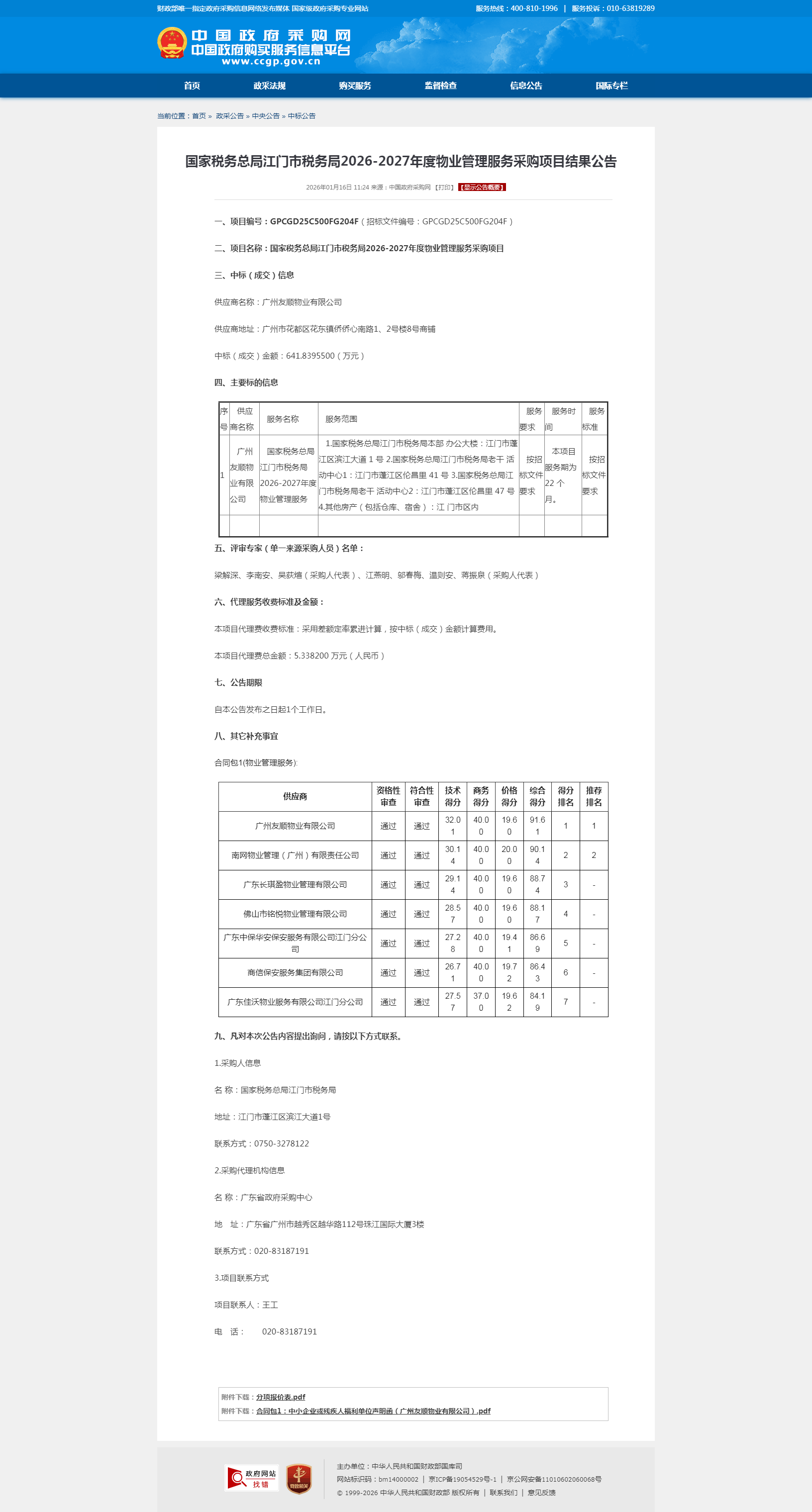 国家税务总局江门市税务局2026-2027年度物业管理服务采购项目结果公告