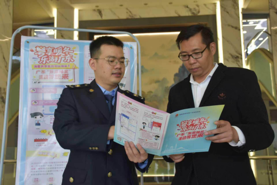 在揭西县,税务干部组成税务“蓝精灵”志愿服务队,走进多家商超、家电商铺,沉浸式开展广东省“粤享暖冬 乐游广东”发票抽奖推广工作,将发票抽奖的惊喜送到群众身边,把惠民好政策落到县域发展最前线。